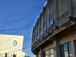 | ブラケット設置完了 | 看板本体荷揚げ |